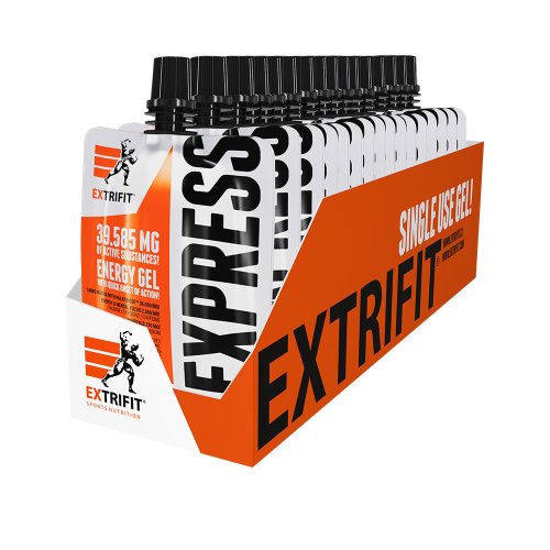 Balení obsahuje 16 ks. ! Obsahuje kofein, není vhodné pro děti a těhotné ženy. Denní dávka (1 sáček) obsahuje 80 mg kofeinu. Produkt není vhodný pro osoby trpící přecitlivělostí na kofein. EXPRESS ENERGY GEL je unikátní energetizující produkt od Extrifitu®, který sportovci používají k okamžitému dodání energie před tréninkem a při tréninku. Jdete na trénink unavení po dlouhém dni v práci? Chybí Vám energie v průběhu delší fyzické aktivity? EXPRESS ENERGY GEL Vám okamžitě vrátí energii do sportovního i mentálního výkonu díky vyváženému poměru tří druhů sacharidů, obsahu energizérů, stimulantů a vyváženému komplexu minerálních látek. A to vše v kompaktním balení hotového gelu, který je připravený k okamžité konzumaci. Pro koho je Express Energy Gel určený? Express Energy Gel je určený pro všechny, kteří potřebují okamžitě doplnit a vrátit energii k fyzickému či psychickému výkonu a pro sportovce, kteří usilují o maximální intenzitu tréninku. Je vhodný pro použití jak před tréninkem pro rychlé dodání všech látek a energie, které tělo potřebuje pro fyzickou aktivitu, tak i pro použití při tréninku, kdykoliv Vám docházejí síly. Tímto produktem okamžitě doplníte vypocené minerální látky a získáte další energii. Express Energy Gel je tak určený pro všechny příznivce fitness i kulturistiky, pro hokejisty, zápasníky, cyklisty, běžce, strongmany i pro všechny další silové, silově vytrvalostní a vytrvalostní sportovce, kteří potřebují okamžitě doplnit energii a zvýšit svůj fyzický i mentální výkon. Jaké jsou výhody gelové formy? Chodíte na trénink po dlouhém dni v práci či ve škole? Nebo máte delší a různě rozfázované tréninky či zápasy? Není právě pro Vás nejvhodnější formou rychlého dodání energie gel v kompaktním balení, který obsahuje všechny potřebné látky a je připraven k okamžité konzumaci? Malé balení gelu můžete mít celý den u sebe a brát s sebou na trénink, na zápasy, na cesty, na výběhy, túry i cyklistiku. Nemusíte s sebou nosit žádné nádoby jako šejkry, hledat zdroj vody ani nic odměřovat. Kompaktní balení Express Energy Gel můžete mít kdykoliv u sebe a okamžitě dodat energii a další potřebné živiny v jedné přesně dávkované porci. Co vše Express Energy Gel obsahuje? Okamžitý účinek pro rychlé dodání a obnovu energie je zajištěn obsahem vyváženého poměru tří druhů sacharidů (dextrózy, malodextrinu a isomaltulózy Palatinose – jeden sáček obsahuje celkem 36 g sacharidů), které zajistí Vašemu tělu dostatek energie na trénink, komplexu stimulantů obsahujícího kofein (100 mg), taurin (2000 mg) a tyrosin (750 mg), které Vás nabudí do tréninku a vrátí Vám energii, kdykoliv docházejí síly. Vyvážený obsah minerálních látek (draslík 400 mg, hořčík 75 mg, vápník 160 mg, sodík 100 mg) Vám okamžitě dodá všechny potřebné látky nutné pro práci svalů, o které jste přišli pocením či únavou a které jsou nezbytné pro správnou funkci svalů. Express Energy Gel Vás díky vyváženému složení a kompaktní formě gelu okamžitě vrátí do hry! Doporučené dávkování: