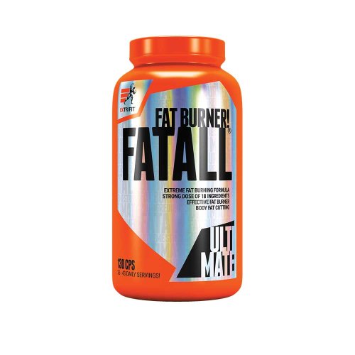 ! Obsahuje kofein, není vhodné pro děti a těhotné ženy. Denní dávka obsahuje 244,4 mg kofeinu ve 3 kapslích, 407,4 mg kofeinu v 5 kapslích. Produkt není vhodný pro osoby trpící přecitlivělostí na kofein. Takto komplexní spalovač tuku nemá na trhu obdoby a je vůbec nejúčinnějším výrobkem v kategorii spalovačů tuku. Produkt Fatall® Ultimate Fat Burner je sestaven speciálně tak, aby podporoval nejen spalování tuku, ale abyste se v průběhu redukčního programu necítili unaveni a aby redukční dieta nesnižovala Váš tělesný výkon ani mentální výkon a neovlivňovala negativně Vaši náladu. Fatall® Ultimate Fat Burner je v kapslované formě. Díky ní je výborně stravitelný. Kapsle neobsahují žádná pojiva jako některé tablety, kvůli nimž se účinné látky dlouho a špatně tráví. Pro efektní spalování tuku potřebujete, aby se účinné látky dostaly do krevního oběhu rychle a začaly účinkovat v tu správnou chvíli. A proto je kapslovaná forma tou nejvhodnější volbou. Kapsle je potištěna logem Extrifit® a barvivo potisku je přírodní. Některé z 18 účinných látek: