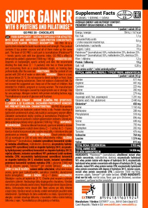 Go Pro 30 je sportovní nápoj určený pro budování svalové hmoty a síly. Obsahuje 8 proteinových zdrojů (30 % bílkovin: instantní syrovátkový koncentrát vyrobený metodou ultrafiltrace, enzymaticky hydrolyzovaný 90% syrovátkový izolát se stupněm hydrolýzy DH 8, enzymaticky hydrolyzovaný syrovátkový koncentrát se stupněm hydrolýzy DH 32, vaječný albumin, enzymaticky hydrolyzovaný syrovátkový koncentrát se stupněm hydrolýzy DH 5, instantní syrovátkový 90% proteinový izolát vyrobený metodou CFM, micelární kasein, instantní syrovátkový proteinový koncentrát vyrobený metodou CFM). Bílkoviny výrobku Go Pro 30 jsou obohaceny ještě o volný glutamin. Základem sacharidové složky výrobku je isomaltulóza (Palatinose®) - moderní sportovní sacharid s nízkým glykemickým indexem, která je doplněna o maltodextrin a dextrózu. O použitých nativních CFM surovinách: CFM je přírodní, nechemický proces výroby syrovátkového proteinu nejvyšší kvality, filtrovaného na speciálním, vysoce technologicky vyspělém keramickém cross-flow filtru, který je schopen dokonale odfiltrovat všechny nežádoucí složky (jako je tuk, laktóza…) a izolovat čistou (panenskou) syrovátkovou bílkovinu se zachováním všech cenných primárních mikrofrakcí, jako je beta laktoglobulin, alfa laktoglobulin, sérový albumin, immunoglobulin, glykomakropeptid, laktoferin, laktoperoxidáza, peptony proteáz. Při CFM nejsou používány žádné pomocné chemikálie či rozpouštědla. CFM je nejšetrnější existující metoda výroby bílkovin, protože surovina není vystavena žádným fyzikálním veličinám, např. vysokému tlaku, teplotě, iontům. Pouze samovolně prochází svojí vlastní vahou přes keramické filtry. Díky tomu je finální syrovátkový protein intaktní = nedotčený ničím a nikým = tzv. panenský protein (virgin protein). Jeho struktura, složení bílkovin, vůně, barva a chuť je přirozená, ničím neovlivněná a nezměněná, zůstává v původní přírodní, tzv. nativní podobě. CFM proces je vedle zachování všech cenných frakcí šetrný i k minerálům. CFM protein obsahuje více vápníku, než obsahují proteiny vyrobené jinými metodami, např. iontovou výměnou, a také méně nežádoucího sodíku.