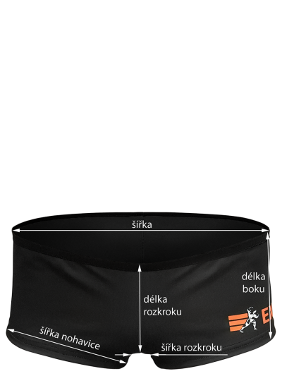 100 % polyester Lehké šortky plavkového, pružného materiálu jsou v černé barvě, s potiskem znaku Extrifit na boku a vpravo vzadu. Výraznější vykrojení přes zadek, dvojité prošití, v pase pružný lem. Orientační rozměry: