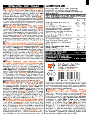 rýžovo-ovesný komplex 55 % (rýže mletá 73 %, ovesné vločky 27 %), proteinový komplex 28 % [instantní syrovátkový proteinový koncentrát+ 93 %, proteinové kuličky 7 % (syrovátkový proteinový izolát, rýže)], obilné křupky 10 % (ovesné a pšeničné vločky, sacharóza, řepkový olej, hydrolyzovaná sacharóza, kokos), kakao se sníženým obsahem tuku (pro příchuť čokoláda), jemně strouhaný kokos 10 % (pro příchuť kokos), čokoládové hobliny 5 % (sacharóza, kakaová hmota, kakaové máslo, přírodní vanilkové aroma, emulgátor: slunečnicový lecitin) (pro příchuť čokoláda), lyofilizovaný ananas 4 % = 25,2 g čerstvého ananasu* (pro příchuť ananas), lyofilizované borůvky 4 % = 25,2 g čerstvých borůvek* (pro příchuť borůvka), lyofilizovaná jablka 4 % = 28,8 g čerstvých jablek* (pro příchuť jablko se skořicí), lyofilizované jahody 4 % = 43,2 g čerstvých jahod* (pro příchuť jahoda), lyofilizované maliny 4 % = 25,2 g čerstvých malin* (pro příchuť malina), lyofilizované mango 4 % = 21,6 g čerstvého manga* (pro příchuť mango), lyofilizovaný a sušený banán 4 % = 22,7 g čerstvých banánů* (pro příchuť banán), vanilková semínka 0,5 % (pro příchuť vanilka), mletá skořice 0,3 % (pro příchuť jablko se skořicí), inulin, přírodní barvivo: beta karoten (pro příchuť ananas, banán a vanilka), aroma, regulátor kyselosti: kyselina citronová (pro příchutě ananas a malina), sladidlo: sukralóza. * v jednom sáčku (90 g), + obsahuje emulgátor: slunečnicový lecitin 0,4 %. Upozornění: Doplněk stravy se sladidlem. Skladujte na suchém a chladném místě při teplotě do 20 °C. Chraňte před mrazem a přímým slunečním zářením. Uchovávejte mimo dosah dětí. Není určeno pro děti, těhotné a kojící ženy. Výrobek není určen jako náhrada pestré stravy. Nepřekračujte denní doporučenou dávku. Výrobce neručí za škody vzniklé nevhodným použitím nebo skladováním. Spotřebujte do data uvedeného na obalu. Upozornění pro alergiky: výrobek obsahuje oves, pšenici a bílkoviny z kravského mléka včetně laktózy. Některé suroviny ve výrobku jsou vyráběny v závodě zpracovávajícím také sóju, celer, sezam, hořčici a siřičitany.