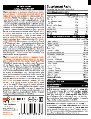Příprava za studena: Stačí přidat vodu nebo mléko a za chvíli máte hotovo! Vysoký obsah kvalitních bílkovin: Hlavním zdrojem je oblíbený 80% syrovátkový koncentrát, ideální pro maximální podporu regenerace, růstu a ochrany svalů. Nutriční profil bez kompromisů: Hromada BCAA, kopec plnohodnotných bílkovin a komplexní sacharidy z rýže, ovsa a pšenice pro stabilní přísun energie. Dokonalé křupání: Kombinace obilných křupek a exkluzivních proteinových kuliček tvořené výhradně z 90% syrovátkového izolátu a rýže vás pohltí hned po prvním soustu! Lyofilizované ovoce: Na ovocné příchutě jsme použili až 432 g čerstvých plodů (platí pro velké balení)! Díky lyofilizaci si ovoce zachovává přirozenou chuť, vůni a zdraví prospěšné látky. Prvotřídní suroviny, vynikající chuť: Jemně strouhaný kokos, pravá skořice, vanilka nebo hobliny z hořké čokolády. Vyberte si ze široké škály vyladěných příchutí. Inulin pro zdravé trávení: Podpora střevní rovnováhy díky prebiotickému účinku. Praktické sáčky na cesty Produkt je dostupný nejen v klasickém balení, ale také v jednorázových sáčcích. Každou porci si tak můžete vychutnat v jiné příchuti, což přináší vítanou rozmanitost. Sáčky jsou ideální na cesty, do práce nebo do fitka – stačí je hodit do tašky a máte zdravé jídlo kdykoliv po ruce. Dieta bez kompromisů Protein Break! je ideální volba pro ty, kdo chtějí shodit přebytečné tuky. Díky vyváženému složení vytvoříte pro tělo ty nejlepší podmínky – kvalitní bílkoviny pro ochranu svalů, dostatek BCAA a komplexní sacharidy s vlákninou pro stabilní energii bez výkyvů. Výhody na první pohled: