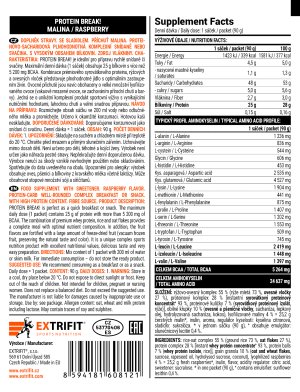 Příprava za studena: Stačí přidat vodu nebo mléko a za chvíli máte hotovo! Vysoký obsah kvalitních bílkovin: Hlavním zdrojem je oblíbený 80% syrovátkový koncentrát, ideální pro maximální podporu regenerace, růstu a ochrany svalů. Nutriční profil bez kompromisů: Hromada BCAA, kopec plnohodnotných bílkovin a komplexní sacharidy z rýže, ovsa a pšenice pro stabilní přísun energie. Dokonalé křupání: Kombinace obilných křupek a exkluzivních proteinových kuliček tvořené výhradně z 90% syrovátkového izolátu a rýže vás pohltí hned po prvním soustu! Lyofilizované ovoce: Na ovocné příchutě jsme použili až 432 g čerstvých plodů (platí pro velké balení)! Díky lyofilizaci si ovoce zachovává přirozenou chuť, vůni a zdraví prospěšné látky. Prvotřídní suroviny, vynikající chuť: Jemně strouhaný kokos, pravá skořice, vanilka nebo hobliny z hořké čokolády. Vyberte si ze široké škály vyladěných příchutí. Inulin pro zdravé trávení: Podpora střevní rovnováhy díky prebiotickému účinku. Praktické sáčky na cesty Produkt je dostupný nejen v klasickém balení, ale také v jednorázových sáčcích. Každou porci si tak můžete vychutnat v jiné příchuti, což přináší vítanou rozmanitost. Sáčky jsou ideální na cesty, do práce nebo do fitka – stačí je hodit do tašky a máte zdravé jídlo kdykoliv po ruce. Dieta bez kompromisů Protein Break! je ideální volba pro ty, kdo chtějí shodit přebytečné tuky. Díky vyváženému složení vytvoříte pro tělo ty nejlepší podmínky – kvalitní bílkoviny pro ochranu svalů, dostatek BCAA a komplexní sacharidy s vlákninou pro stabilní energii bez výkyvů. Výhody na první pohled: