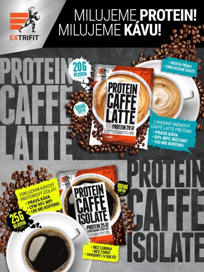 80% syrovátkový protein pravou kávu kofein Protein Caffé Latte 80 je vynikajícím pomocníkem pro stimulaci organismu a pro budování svalové hmoty. Nápoj je optimální ranní dávkou bílkovin a současně Vás příjemně probudí a osvěží. Zkrátka ideální start do nového dne nebo jako chutné kávové osvěžení pro Vaše svaly kdykoli během dne. Výhodou jednorázových sáčků je hygienické balení a také možnost vzít si potřebný počet sáčků s sebou na cesty. Produkt je k dostání také v klasickém balení o hmotnosti 1 000 g. Proteinovou složku tvoří mimořádně kvalitní 80% syrovátkový koncentrát s krémovou konzistencí, velmi vysokým obsahem BCAA a špičkovou stravitelností. Zvlášť pečlivě jsme se věnovali výběru kvalitní instantní kávy s obsahem 2 % přírodního kofeinu a lahodnou chutí. Kofein je látka, která působí jako energizér. Stimuluje centrální nervovou soustavu, a díky tomu jste pak lépe připraveni jak na mentální, tak na fyzický výkon. Běžné espresso neobsahuje takové množství kofeinu, které je potřebné pro skutečně znatelnou stimulaci u pokročilých sportovců nebo kulturistů. Proto jsme k pražené kávě obsažené v Protein Caffé Latte 80 přidali navíc správnou dávku kofeinu tak, aby jeho celkový obsah byl citelných 100 mg v každé dávce. Každá dávka produktu obsahuje: