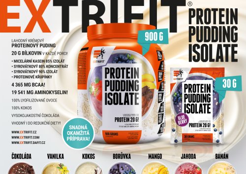 Protein Pudding Isolate – lahodný fitness pudink bez nutnosti vaření! Milujete pudink, ale nemáte čas na vaření a hromadu nádobí? Protein Pudding Isolate připravíte za dvě minuty jen s vodou nebo mlékem! Ideální volba pro zdravou proteinovou svačinu doma, v kanceláři i na cestách. Každá porce obsahuje 20 g vysoce kvalitních bílkovin z 90% CFM syrovátkového izolátu, 85% izolátu micelárního kaseinu a 80% syrovátkového koncentrátu. Tento jedinečný proteinový komplex podpoří regeneraci a růst svalů po náročném tréninku. Součástí jsou i delikátní proteinové křupínky bez přidaného cukru, tvořené pouze z rýže a syrovátkového izolátu – pro ještě lepší zážitek z každé porce! Špičkové složení, prémiové suroviny V Extrifitu se zaměřujeme na prvotřídní kvalitu, proto se můžete těšit na prémiové suroviny, které v běžných produktech jen tak nenajdete. A že jsme s jejich množstvím rozhodně nešetřili!
