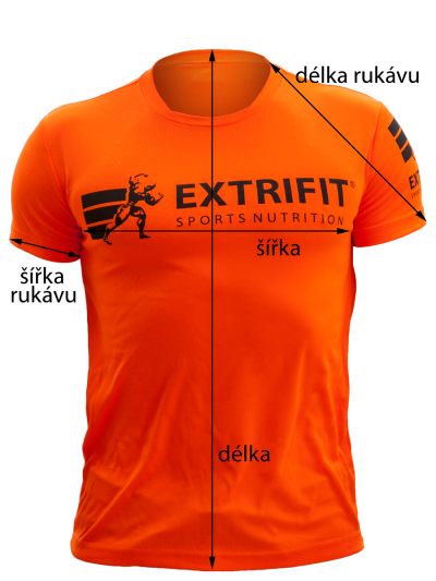 Pohodlné neonově oranžové triko firmy Extrifit s oboustranným černým potiskem, krátký rukáv, kulatý výstřih s překladem. Vyrobeno je z příjemného, vzdušného a pružného materiálu a na přední i zadní straně a jednom rukávu má potisk - černé logo Extrifit. Materiál: