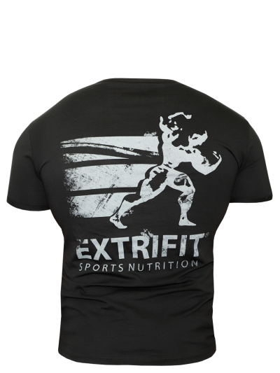 Pohodlné triko firmy Extrifit s velkým oboustranným potiskem, krátký rukáv, kulatý výstřih. Vyrobeno je z příjemného, vzdušného a pružného materiálu a na přední i zadní straně má potisk. Přední strana - šedý potisk s logem Extrifit, zadní strana - stejné provedení na zádech. Zahrnuté rukávy. Materiál: