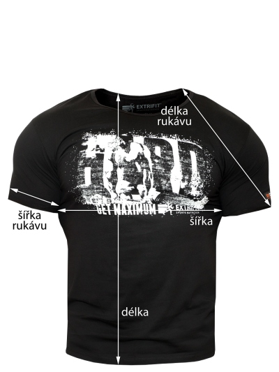 černá/bílá - černé triko a bílý potisk Rozměry: Oblasti měření zaznačeny na připojeném ilustračním obrázku (uvedené míry jsou orientační, mohou se drobně lišit). velikost M