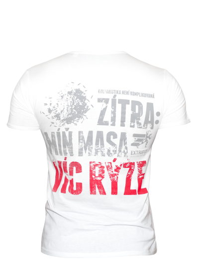 100 % bavlna Padnoucí střih, zakončení dvojitým prošitím. Vytkávaný štítek na levém rukávu. Perte s obdobně barevným prádlem. Varianty: bílá/červeno-šedá - bílé triko a červeno-šedý potisk Rozměry: Oblasti měření zaznačeny na připojeném ilustračním obrázku (uvedené míry jsou orientační, mohou se drobně lišit). velikost M