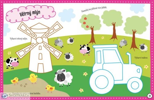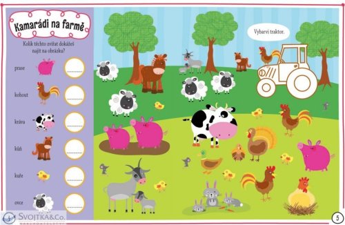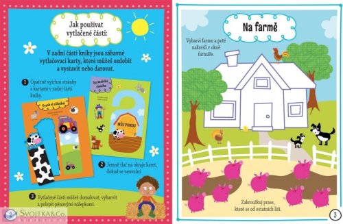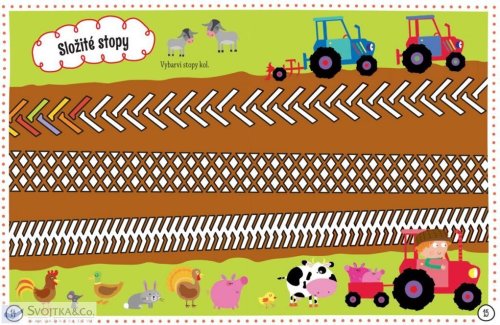 Máš rád či ráda svět domácích zvířátek a zemědělských strojů? Láká tě letní dobrodružství na farmě? Prozkoumej svět farmaření prostřednictvím mnoha zábavných úkolů na stránkách této úžasné knihy. Bavit se můžeš také doplňováním pěnových nálepek. Čeká na tebe přes 100 různých samolepek lidí, zvířat a traktorů, které můžeš nalepit, kamkoliv budeš chtít. Knížka obsahuje též originální vytlačovací karty – záložky, visačky na dveře, přání a pohlednice – které můžeš dozdobit dle libosti a sám či sama je použít nebo s nimi někoho obdarovat. Připravte si barvičky a bystré hlavičky, protože vaše velká farmářská jízda s pěnovými nálepkami právě začíná!