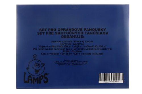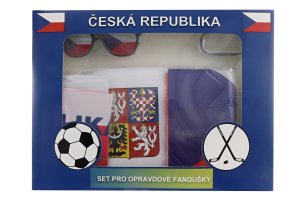 Fandící sada Česká republika pro opravdového fanouška. Sada obsahuje klasický klobouk, náramek, vlajku o velikosti 90x150cm, brýle, pár nafukovacích tyčí a šálu o velikosti 15*135cm.