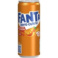 Oblíbená Fanta s příchutí pomeranče v Zero verzi Bez energetické hodnoty, se sladidly Balení obsahuje 24 plechovek Objem 0,33 l