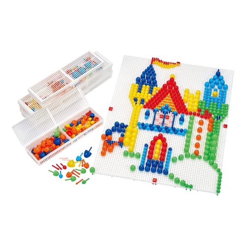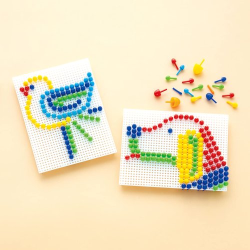 Vytvářejte jedinečné obrazy umisťováním kolíčků rozmanitých pestrých barev a velikostí do děrovaných desek.