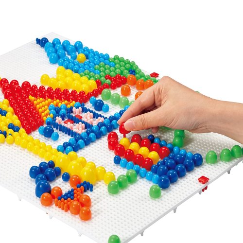 Mozaika FantaColor Modular 4 umožňuje dětem od 4 do 8 let tvořit velké, nádherné mozaiky pomocí 600 kolíčků různých barev a velikostí, které se zasouvají do podložky, jež vznikne spojením čtyř perforovaných základních desek. Vytváření mozaiky zasouváním kolíčků do podložky je zábavná, kreativní a vzdělávací činnost, která pomáhá dětem s rozeznáváním barev, rozvíjí manuální zručnost a zlepšuje koordinaci ruky a oka.Obsah: 4 propojitelné perforované základní desky600 kolíčků 4 různých velikostí (průměr 5, 10, 15 a 20 mm) v 7 barvách1 album s předlohami