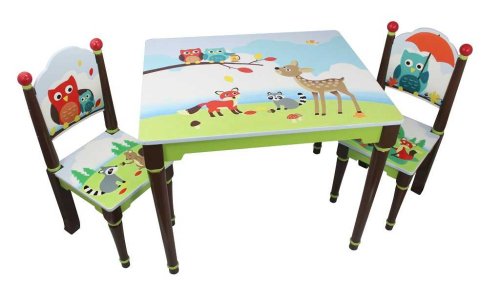 Krásný dřevěný stoleček, "Kouzelný les" bude ozdoubou každého dětského pokojíčku, zvláště pokud je sladěný nábytem s podobným motivem. Je to místo pro vzdělávací a zábavné aktivity vašich dětí. Jde o kvalitní provedení stolečku s vysokou odolností a protiskluzovým povrchem, který se snadno čistí. Právě díky pevné struktuře jsou MDF desky plnohodnotnou náhradou masivního dřeva. Můžete tak vytvořit pohádkový pokojíček s lesními zvířátky, které jsou ručně malované ekologickými a netoxickými barvami na vodní bázi. Hlavní vlastnosti: ručně vyřezávaný a ručně malovaný designstabilní a bezpečná konstrukce - materiál MDFnevyžaduje montáž - již sestavenoprotiskluzový povrchcertifikovánovodné od 3 let