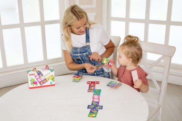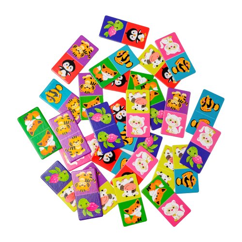 Far Far Land Domino s obrázky zvířátka. Balení obsahuje 28 karet. Hra pro 2-5 hráčů. Při hře 2 hráčů každý hráč dostane 7 karet. Při hře více hráčů každý dostane 5 karet. Zbývající karty jsou v "banku.“ Hráč, který má "dvojitou" kartu (kartu s totožnými obrázky), hraje první. Pokud žádný z hráčů nemá dvojitou kartu, každý hráč si vezme jednu kartu z banku. Pokud má více hráčů dvojitou kartu, začíná ten mladší. Pro rozehrání prvního tahu si však můžete vymyslet svá vlastní pravidla. Hráči se střídají a jeden za druhým přikládají karty ze své ruky ke kartám na hrací ploše se shodným obrázkem. Pokud hráč nemá shodný obrázek, musí si vzít kartu z banku. Hráč, který položí svou poslední kartu na hrací plochu, vyhrává. Pokud všichni hráči mají v ruce karty, ale není možné hrát dál, hra je ukončena "blokem" a vyhrává hráč, který má v ruce nejmenší množství karet.
