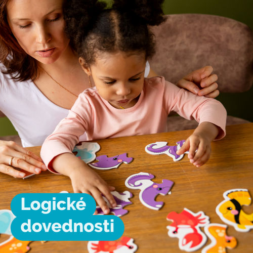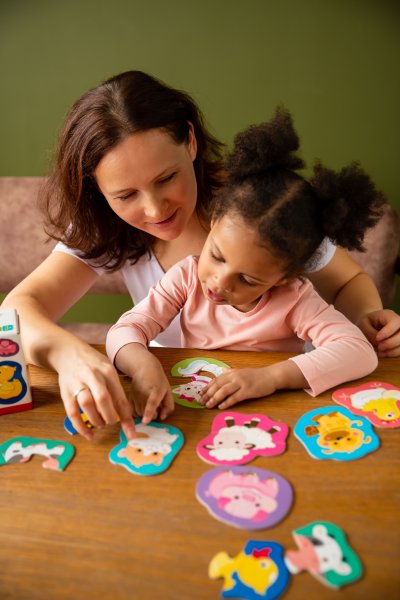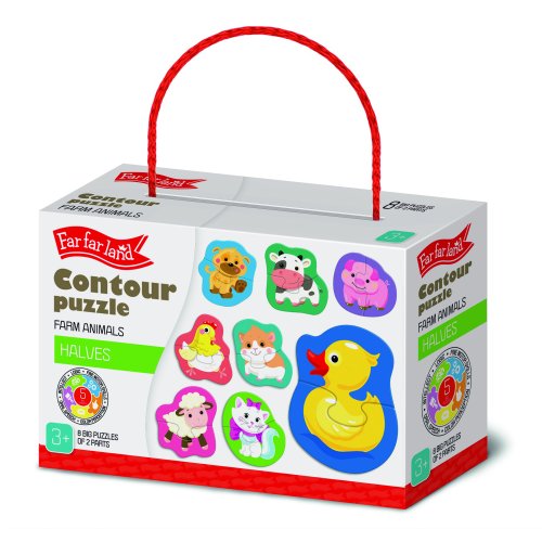 Puzzle obrysové pro děti, motiv zvířátka na farmě. Balení obsahuje 8 puzzle obrázků, které se skládají ze 2 dílků.