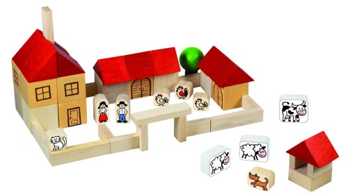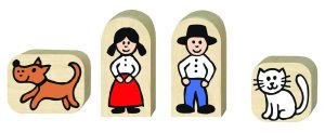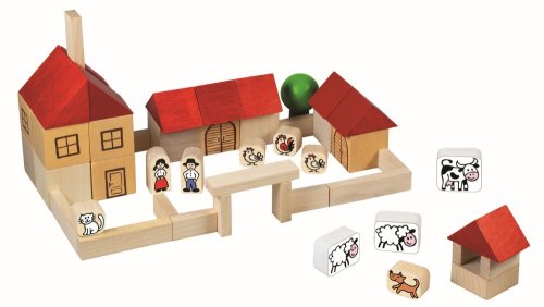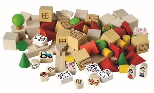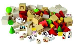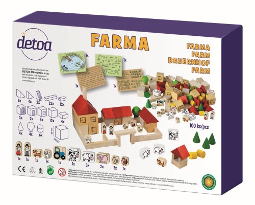 Stavebnice obsahuje 100 ks dřevěných dílků s potiskem v různých tvarech a velikostech.