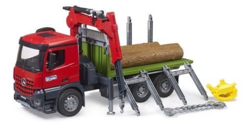Výkon, robustnost a efektivita jsou často rozhodující při každodenní práci na silnicích a na stavbách. Nový MB Arocs byl proto speciálně vyvinut pro tyto potřeby. Kromě těchto technických vlastností byl také odpovídajícím způsobem upraven design. Například přední část masky chladiče je navržena v typickém vzhledu Arocs, který má vyjadřovat obrovskou sílu. I u tohoto modelu byl kladen velký důraz na robustnost a kabina řidiče byla vybavena otevíratelnými dveřmi. Nakládací jeřáb je vybaven drapákem na přemisťování klád, drapák lze zaaretovat v otevřené poloze. Pokud má být poleno uchopeno, sklopí se na něj chapadlo polena a po dotyku uprostřed se chapadlo automaticky zavře. Ukázka funkčnosti tohoto vozíku. Dalšími přednostmi jsou jeřábové podpěry, které lze zvedat a spouštět, a také řetězy používané k zajištění nákladu na klanicích nakládací plošiny. Pro zatížení dřeva z boku lze samozřejmě klanice sklopit. Vozík lze vyložit dozadu sklopením nakládací plošiny. Rozměry: 19,5x30,5x58,5cm. Věk: 3+