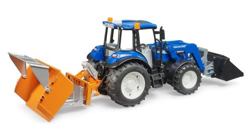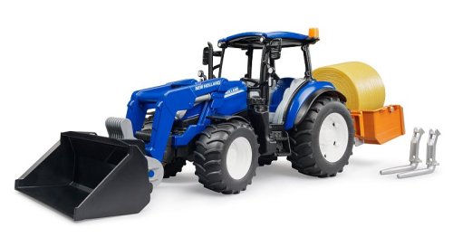 New Holland T5 byl navržen jako všestranný stroj pro moderní farmy. Mnoho variant výbavy, vysoký jízdní komfort a efektivní využití paliva z něj činí spolehlivého partnera pro použití za všech podmínek. Detailně zpracovaný traktor má typické prvky Bruder, jako je terénní otočná přední náprava a přídavná řídicí tyč. Tento traktor lze také kombinovat s téměř veškerým zemědělským nářadím a příslušenstvím z řady BRUDER. New Holland T5.120 je vybaven čelním nakladačem, boxem, vidlemi a kulatým balíkem slámy. Čelní nakladač i box je plně funkční a odnímatelný. Vyrobené z vysoce kvalitních plastů, jako je ABS. Měřítko 1:16. Lze použít pro hru uvnitř i venku. Rozměry produktu: 12,5 x 19,5 x 45 cm. Rozměry balení: 19,5 x 17,5 x 50,5 cm. Věk: 3+