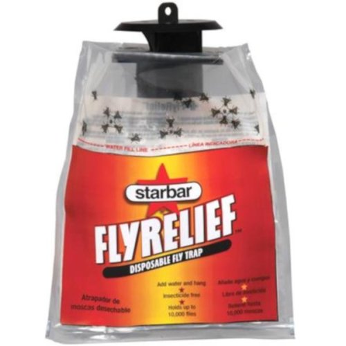 Lapač much bez obsahu insekticidů na jednorázové použití. Vhodný k lapení hmyzu: moucha domácí (musca domestica), slunilka pokojová (Fannia canicularis) a podobné sající druhy, které nejčastěji oškrabávají a nasávají potraviny. Není určeno na bodavý hmyz. Doporučené použití v ohraničených plochách. Nikdy nepoužívejte preventivně, může naopak přilákat mouchy. V místech, kde je populace hmyzu nízká, nemusí lapač fungovat naplno, protože mrtvé mouchy v lapači zároveň vytváří návnadu pro další. FlyRelief™ pochytá tisíce much. Snadné a pohodlné použití, přidejte vodu a zavěšte! Excelentní pro použití v blízkosti koní, domácích mazlíčků, skotu, ovcí, drůbeže, prasat, venkovní psí boudy, na dvoře a v kontejnerech na odpadky nebo kdekoliv je hmyz problémem. Použití: Vytahujte vršek pasti za víčko dokud nezaskočí do správné pozice. Umístěte past ve venkovním prostředí na dobře prosluněném místě, kde je vysoká koncentrace hmyzu, kde je hmyz aktivní nebo kde nebude vadit dráždivý pach. Pro maximální efektivitu by měla být past umístěna alespoň 120 cm od země. V horkém počasí (nad 85 °F/30 °C) funguje past lépe ve stínu. V chladnějším počasí umístěte past na prosluněné místo. Poznámka: Past není doporučena pro použití v uzavřených prostorách nebo na použití proti kousavému hmyzu (mravenci, cvrčci, vážky, kobylky …). Lahvička s atraktantem je uvnitř pytlíku pasti a nesmí být odstraněna. Přes plastový obal pasti uchopte pevně lahvičku mezi palec a ukazováček a nasměrujte jí směrem dolů. Otáčejte čepičkou lahvičky dokud nepraskne a atraktant se z lahvičky nevylije do pytlíku pasti. Poznámka: Držte past ve svislé poloze, aby nemohl atraktant vytéci ven vrškem. Možná bude potřeba zmáčknout lahvičku s atraktantem, aby obsah vytekl ven. Past naplňte vodou po rysku („water fill line“) označenou na obalu. Poznámka: Pro nejlepší výsledek naplňte past vodou, když je zavěšená. Lehce protřepte, aby se atraktant rozptýlil ve vodě. ÚDRŽBA: