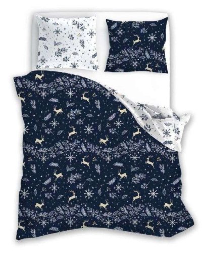 FARO Francouzské Vánoční povlečení Scandic 068 Modré 220/200, 2x70/80 Bavlněné povlečení ve francouzském rozměru 220x200 cm na dvoulůžko, zapínání na zip Materiál: 100% Bavlna Rozměr: 1x 220/200, 2x 70/80 cm
