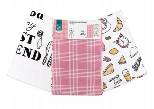 FARO Kuchyňské utěrky Kuke s potiskem sada 3 ks Snídaně 40/60 Stylová sada tří bavlněných utěrek Kuke s potiskem je praktickým pomocníkem i moderní dekorací vaší kuchyně. Utěrky o rozměru 40×60 cm jsou vyrobené ze 100 % bavlny, mají dobrou savost a příjemný materiál. Díky kvalitnímu zpracování a elegantnímu designu se hodí pro každodenní použití i jako originální dárek. Materiál: 100% Bavlna Rozměr: 3x 40/60 cm