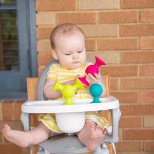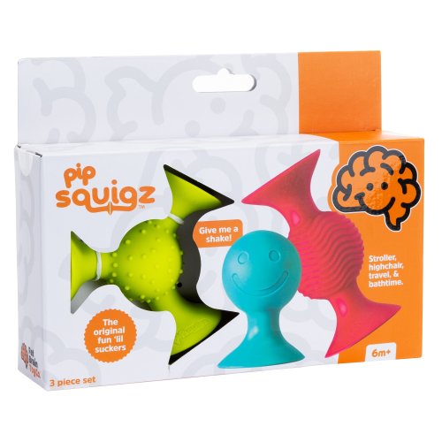 Zahrnuje 3 jedinečně tvarované chrastítka pipSquigz vyrobené z vysoce kvalitního silikonu.