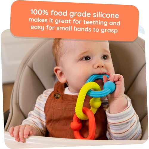 Fat Brain PLIP GRIPS spojovací kroužky. Velikost 8 cm. Vyrobeno z food grade silikonu. Obsahuje 3 kroužky. S různou texturou, vhodné pro kousání.