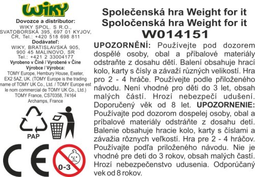 Fat Brain Společenská hra Weight for it. Balení obsahuje hrací kolo, karty s čísly a závaží různých velikostí. Hra pro 2 - 4 hráče. Vytáhněte si kartu a umístěte závaží na vhodné místo tak, aby se číslo na obvodu kola zastavilo na vaší šipce hodnotou shodnou s vytaženou kartou.