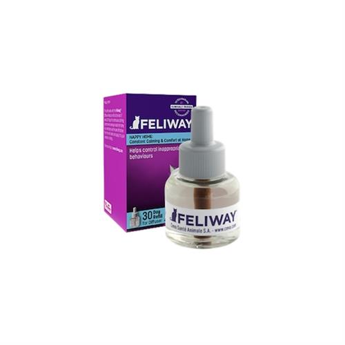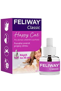 Difuzér FELIWAY® Classic pomáhá utišit neklidné kočky (v domácnosti nebo na cestách) a zabránit nežádoucímu chování, jako je značkování močí, škrábání nebo ukrývání. Dociluje toho tím, že do okolního prostředí nepřetržitě rozptyluje kopii uklidňujícího obličejového feromonu, jimž kočky označují své prostředí jako bezpečné a domácí. Jeden difuzér pokryje prostor o rozloze až 70 m2. Složení: syntetická forma kočičího tvářového feromonu frakce F3 (2 %), excipient q. s. (100 g). Doba účinnosti: 1 náplň/až 30 dní Použití: Odstraňte uzávěr nádobky, našroubujte difuzér na nádobku a jemně utáhněte. Zasuňte difuzér do elektrické zásuvky tak, aby knot směřoval vzhůru, a nechejte jej stále zapojený. Nezapojujte difuzér do zásuvek pod poličkami, za dveřmi, závěsy a nábytkem – omezený přístup vzduchu snižuje jeho účinnost. Pro optimální účinek difuzér každý měsíc zkontrolujte a jednou za šest měsíců nahraďte novým. Upozornění: Difuzér FELIWAY® je určen k použití v interiéru. Přípravek nemá sedativní účinky, a je-li používán v souladu s doporučeními, feromony v něm obsažené jsou bezpečné pro zvířata i lidi. Určeno pro použití pouze v rozmezí napětí 220–230 V. Nikdy nepoužívejte s adaptérem nebo konvertorem napětí. Náplň FELIWAY® může být použita jen s difuzérem FELIWAY®.