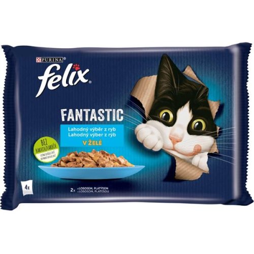 Kompletní krmivo pro dospělé kočky. FELIX Fantastic je řada lahodných krmiv, které vypadají a voní tak masově, že působí jako jídlo uvařené Vámi samotnými. Speciálně připravené z jemných masových kousků ve šťavnatém želé budou Vaší kočce připadat neodolatelná při každém krmení. FELIX Fantastic je také k dostání v široké škále rybích a masových příchutí, aby uspokojil touhy Vašeho kočičího miláčka po rozmanitosti. Tato lahodná krmiva jsou zdrojem esenciálních Omega-6 mastných kyselin a mají správnou kombinaci vyvážených minerálních látek a vitaminů. Jsou plná zdravých dobrot, aby uspokojila 100 % denních potřeb Vaší kočky při podávání podle krmného návodu na obale. Složení: S LOSOSEM: Maso a vedlejší výrobky živočišného původu, bílkovinné extrakty rostlinného původu, ryby a vedlejší výrobky z ryb (losos 4 %), minerální látky, cukry. S PLATÝSEM: Maso a vedlejší výrobky živočišného původu, bílkovinné extrakty rostlinného původu, ryby a vedlejší výrobky z ryb (platýs 4 %), minerální látky, cukry. Dávkování: Dospělou kočku o průměrné hmotnosti 4 kg krmte 3-4 kapsičkami denně, nejlépe ve dvou samostatných porcích. Podávejte při pokojové teplotě. Čerstvá čistá voda by měla být vždy k dispozici. Krmné dávky jsou určeny pro kočky s normální aktivitou v přirozeném prostředí. Individuální potřeby se mohou lišit a krmnou dávku je proto nutné přizpůsobit tak, aby si Vaše kočka udržela optimální hmotnost.