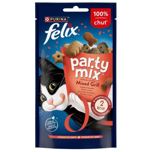 Felix Party Mix Grill je neodolatelný mix pochoutek plný lákavých vůní, lahodných příchutí a atraktivních tvarů. Pamlsky obsahují bílkoviny, vitamíny a omega-6 mastné kyseliny pro zdravější a veselejší život vaší kočky. Hlavní přednosti: