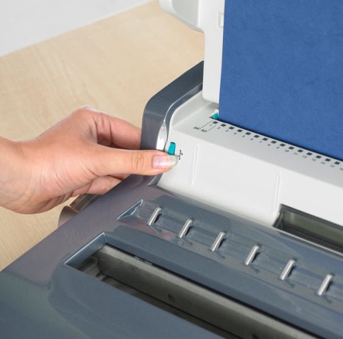Vertikální vkládání listů pro lepší setřesení svazku a doraz svazku usnadňují bezchybnou perforaci. Široký půdorys stroje zabezpečuje dobrou stabilitu při děrování. Děruje čtveraté otvory 4×3 mm.