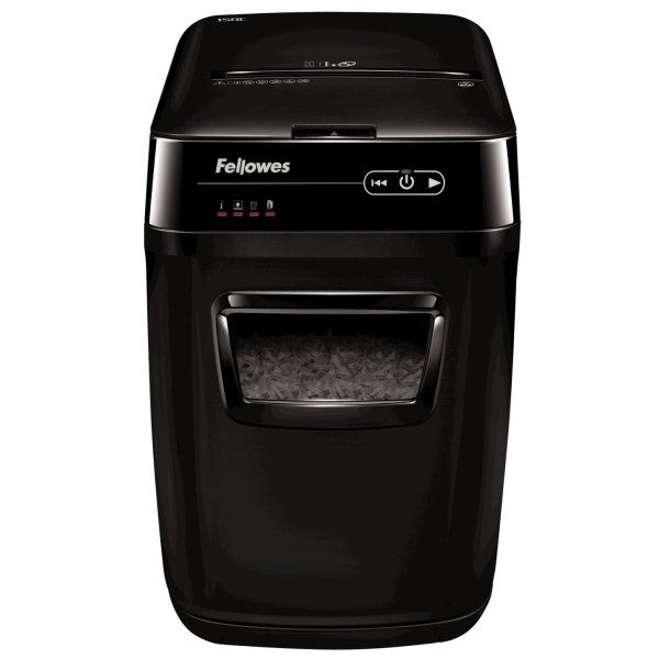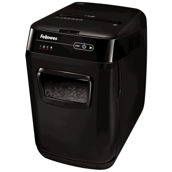 Skartování nikdy nebylo snazší. Revoluční novinka značky Fellowes, Vás o tom přesvědčí. Jen nalož, zapni a běž. Tento automatický skartovací stroj Vám umožní věnovat se prospěšnějším kancelářským činnostem, nežli je opakované postávání u běžného skartovače. Zařízení je schopno na jeden pracovní cyklus při automatickém podávání skartovat až 150 listů 70g papíru v křížovém řezu 4×38 mm. Skartovač je vybaven vstupní štěrbinou pro ruční podání až 8 listů papíru. Výkonný řezací mechanismus zpracuje při automatickém podávání sešívačkou sešité papíry (až 20 sponkou sešitých listů 70g papíru), sponky (až 20 spojených listů). Při manuálním podávání i kreditní karty.