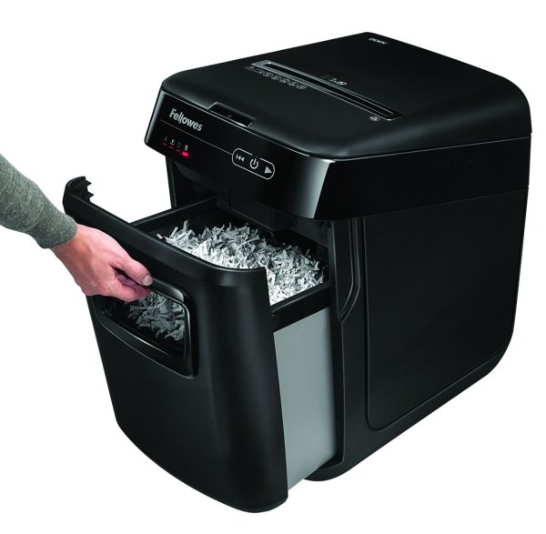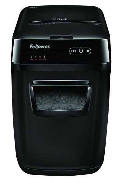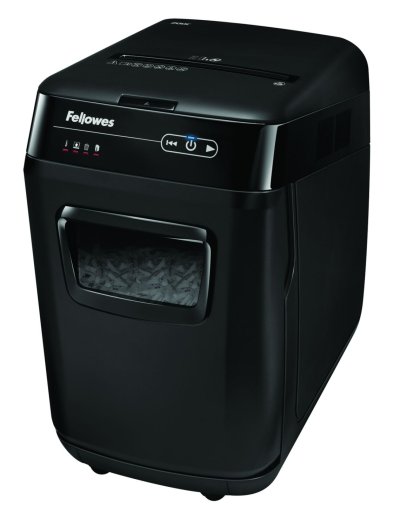 Skartování nikdy nebylo snazší. Revoluční novinka značky Fellowes Vás o tom přesvědčí. Jen nalož, zapni a běž. Tento automatický skartovací stroj Vám umožní věnovat se prospěšnějším kancelářským činnostem, nežli je opakované postávání u běžného skartovače. Zařízení je schopno na jeden pracovní cyklus při automatickém podávání skartovat až 200 listů 70g papíru v křížovém řezu 4×38 mm. Skartovač je vybaven vstupní štěrbinou pro ruční podání až 10-ti listů papíru. Výkonný řezací mechanismus zpracuje při automatickém podávání sešívačkou sešité papíry (až 20 sponkou sešitých listů 70g papíru), sponky (až 20 spojených listů). Při manuálním podávání i kreditní karty, CD/DVD.