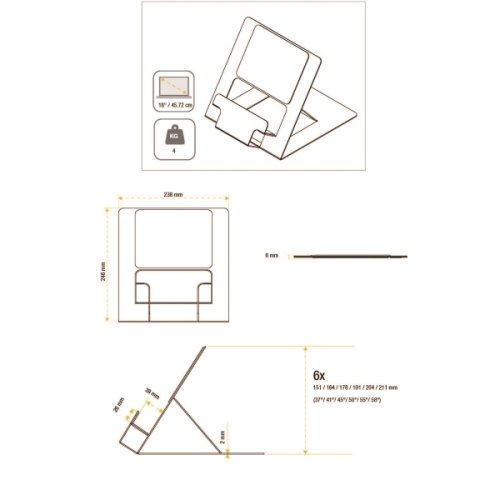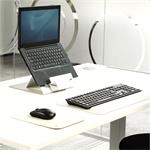 Podstavec pro notebooky s úhlopříčkou až 18" umožňuje nastavení úhlu sklonu a výšky v šesti stupních. Podstavec tak pomáhá redukovat napětí zad a udržovat správné držení těla. Otvor v podstavci zajistí dostatečné proudění vzduchu a prostor pro správu kabeláže. Díky minimalistickému designu se hodí do každé kanceláře.