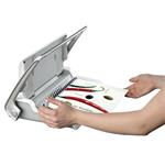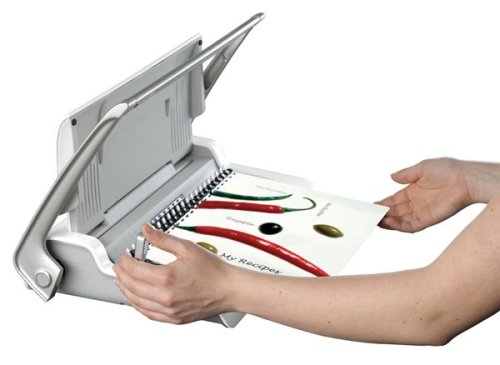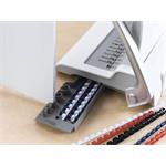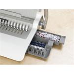 Oddělená ergonomická děrovací a vázací páka pro průběžné vkládání děrovaných listů do plastového hřbetu výrazně zefektivňuje práci. Vkládání děrovaných listů shora pro snadné setřesení a tím bezchybnou perforaci.