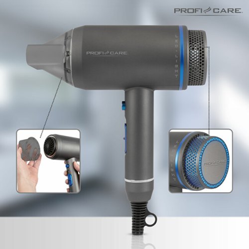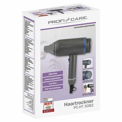 Moderní fén HT 3082 od značky ProfiCarevýkon až 1 800 W. Je vybaven ionizační funkcí a nabízí tak vylepšené kadeřnické možnosti díky antistatickému efektu. Výhodou je modré LED osvětlení. Teplotu lze nastavit ve 3 úrovních + studený vzduch. Součástí je také difuzér, který se k fénu připevňuje magneticky a je tak otočný o 360 °. Fén je vyroben ze Soft Touch materiálu, který je příjemný na dotek. Samozřejmostí je filtr na zadní straně fénu, která zachytí nežádoucí předměty. Je vybaven ochranou proti přehřátí. Uvnitř fénu je vysoce kvalitní nerezová vložka. Napájení je 220-240 V, 50/60 Hz a výkon až 1 800 W.