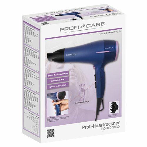 Profesionální fén s dotykovým senzorem o výkonu 2200 W. Fén se automaticky vypne, pokud ho přestanete držet v ruce. Je vybaven ionizační technologií, což zaručuje antistatický efekt a výsledkem budou nevysušené, hladké a lesklé. Lze vybrat ze 3 teplotních a 2 rychlostních stupňů. Fén je dále vybaven funkcí studeného vzduchu pro dokončování účesů, LED kontrolkou, 360° kloubem kabelu pro jednoduchou manipulaci a ochranou proti přehřátí. Součástí balení je profesionální nástavec na objem vlasů. Filtr pro přívod vzduchu je vyjímatelný. Fén lze zavěsit díky oku pro zavěšení. Výkon je 1800–2200 W.