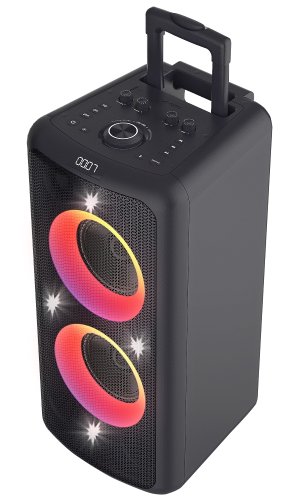 Přenosný reproduktor s výkonem 100 W a barevným LED podsvícením. Přehrávat hudbu je možné jak drátově skrze optický a AUX vstup, tak i bezdrátově skrze Bluetooth. Samozřejmostí je port USB pro přehrávání z flashdisku. Díky vestavěné baterii lze přehrávat hudbu až 6 hodin bez nutnosti připojení na elektrickou síť. Součástí balení je dálkové ovládání a bezdrátový mikrofon.