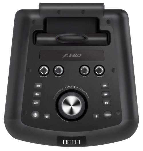 Přenosný párty reproduktory Fenda F&D PA300, který zaplní místnost silným zvukem o celkovém výkonu 100 W RMS a rozproudí každý večírek. Díky kolečkům a madlu můžete reproduktor snadno transportovat na požadované místo, na stylovém párty vzhledu se podílí také barevné LED podsvícení. Poslech hudby zajišťuje FM rádio, ale můžete také přehrávat songy z vlastní kolekce ze smartphonů nebo tabletů díky rozhraní Bluetooth. Reproduktor Fenda F&D PA300 zahrnuje také USB port pro přehrávání z přenosných flashdisků a nechybí ani vstup pro mikrofon pro vaše vlastní hudební výstupy a karaoke párty. K dispozici je také dálkové ovládání pro snadnou kontrolu.