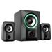 Stylové 2.1 reproduktory s celkovým výkonem 60 W. Na čelním panelu subwooferu se nachází stavový LCD displej a LED podsvícení, které ozvláštní váš poslech. Hudbu lze přehrávat i přímo z USB médií díky přítomnosti USB portu. Bezdrátový přenos je možný skrze Bluetooth. Uživatelský komfort podtrhne dálkové ovládání, které se nachází v balení.