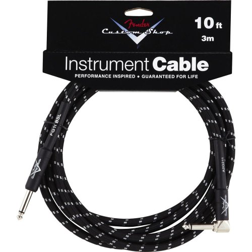 Nástrojový kabel ze série Fender Custom Shop Performance Extra silný pletený plášť Flexibilní konstrukce zmírňuje lámání 1x 6,3 mm rovný jack 1x 6,3 mm zahnutý jack Délka kabelu 3 m Černá barva