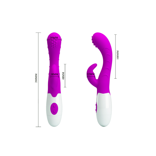 Rozměry a vlastnosti Voděodolný Počet programů: 7 Celková délka: 20 cm Průměr vibrátoru: 3 cm Pracovní část: 10 cm Délka dráždiče klitorisu: 4,8 cm Průměr dráždiče klitorisu: 2,2 cm Materiál: silikon Pohon: 2x baterie AAA
