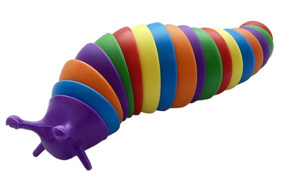 Fidget Toy - Duhový slimák Antistresový slimák je ideální hračkou pro rozvoj motoriky, smyslového vnímání a pro zkrácení dlouhé chvíle. Děti jednoduše zabaví při cestování autem nebo v čekárně u lékaře. Pohyblivé barevné klouby umožňují dětem slimáka tvarovat a libovolně s ním hýbat. Hračka je vyrobena z příjemného plastu, který je lehce omyvatelný. S touto roztomilou kloubovou hračkou zaženou hravě stres a únavu nejen děti, ale i dospělí. Je vhodnou pomůckou pro autistické děti a pro děti s poruchou pozornosti.