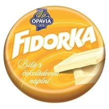 Kulatá oplatka s čokoládovou náplní máčená v bílé čokoládě