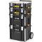Plastový box na nářadí Modulový design Odolný proti nárazu Odolný proti vodě a prachu Teleskopická rukojeť Kovový zámek Terénní tlumící kola Rozměry: 55 x 47 x 68 cm Váha: 8,5 kg