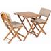 Větší a pohodlnější sestava balkónového nábytku. Lehce rozložitelný čtvercový stolek o rozměrech 65 x 65 cm je doplněn dvojicí židlí 55 x 40 x 81 cm. K židlím je možné dokoupit sadu polštářů sedáku a zádové opěrky. Všechny komponenty je možné snadno složit a minimalizovat tak nároky na jejich uskladnění. Stůl i židle jsou vyrobeny z tropické dřeviny Akácie. Toto velice tvrdé dřevo bez problémů odolává i nepřízni povětrnostních vlivů