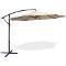 Závěsný slunečník o rozměru Ø 3 m Krémový potah z 100% polyesteru 160 g Materiál: hliník /ocel/polyester 8 ocelových žeber 10 × 18 mm Ovládání pomocí kličky Možnost nastavení úhlu sklonu Průměr hliníkové tyče 4,8 cm Maximální rozměr zátěží: 45 cm Pro venkovní použití